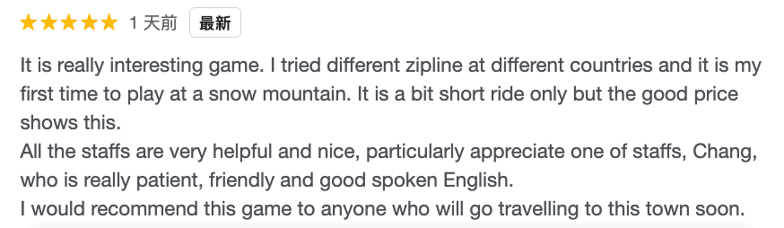 最後再分享個小故事,剛好在昨天我得到了一則 Google 評論,讓我想到能讓人們在旅行放鬆時,能夠得到好的回憶是很棒的事。